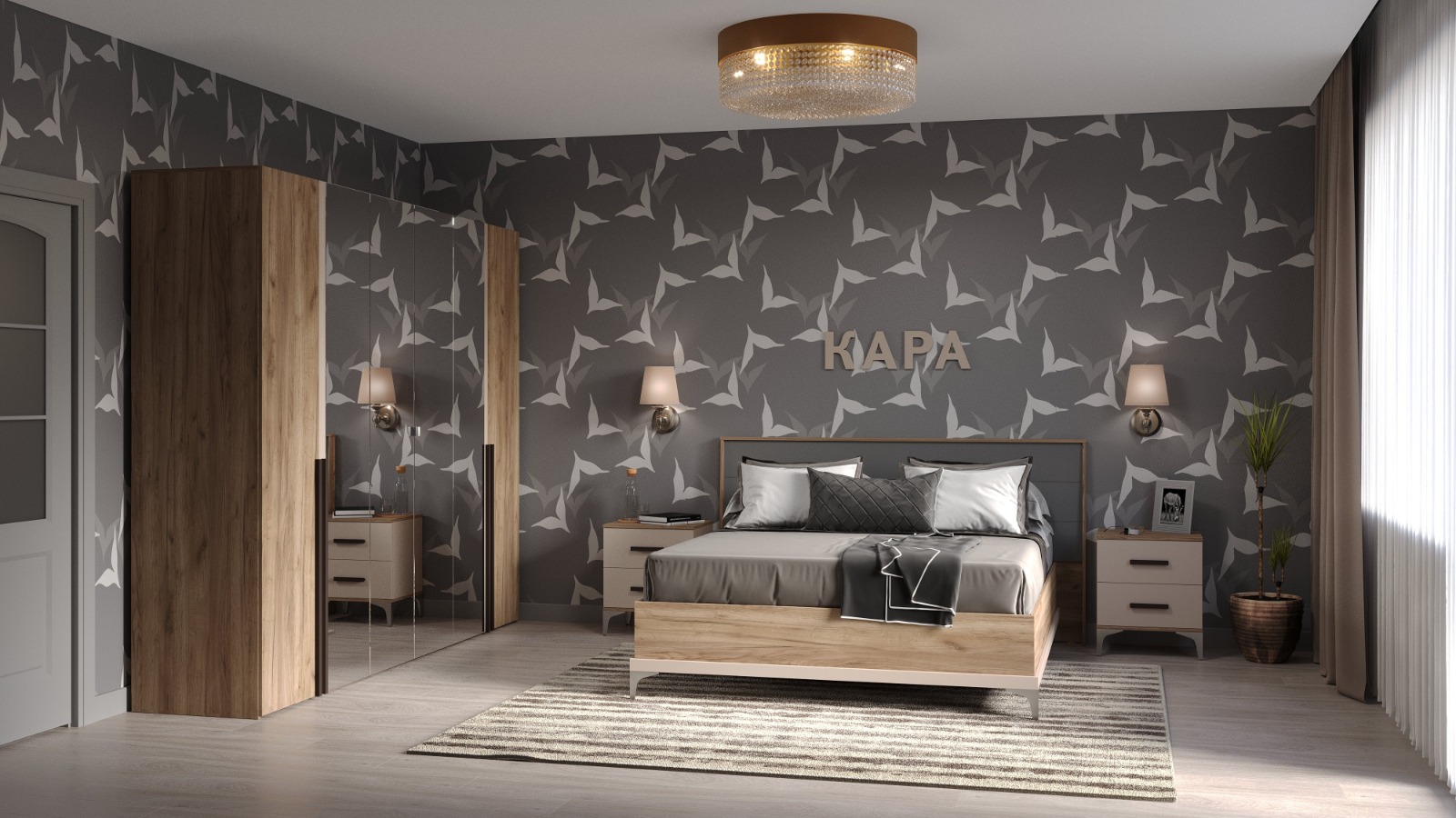 Спальный гарнитур с нежным названием Кара  такой же мягкий и романтичный. В нем воплощены самые актуальные тенденции мебельной индустрии, основой которых сегодня является акцент на мягкие, природные, естественные линии. Все это отражается в деталях коллекции ,которые делают эту спальню изысканной и необыкновенной.Нестареющий дизайн Кара за счет своей лаконичности всегда находится на пике мебельной моды и воплощает в себе все современные тренды.  Графитовый оттенок поможет создать строгий и изысканный стиль в интерьере. В качестве материалов используются долговечные материал