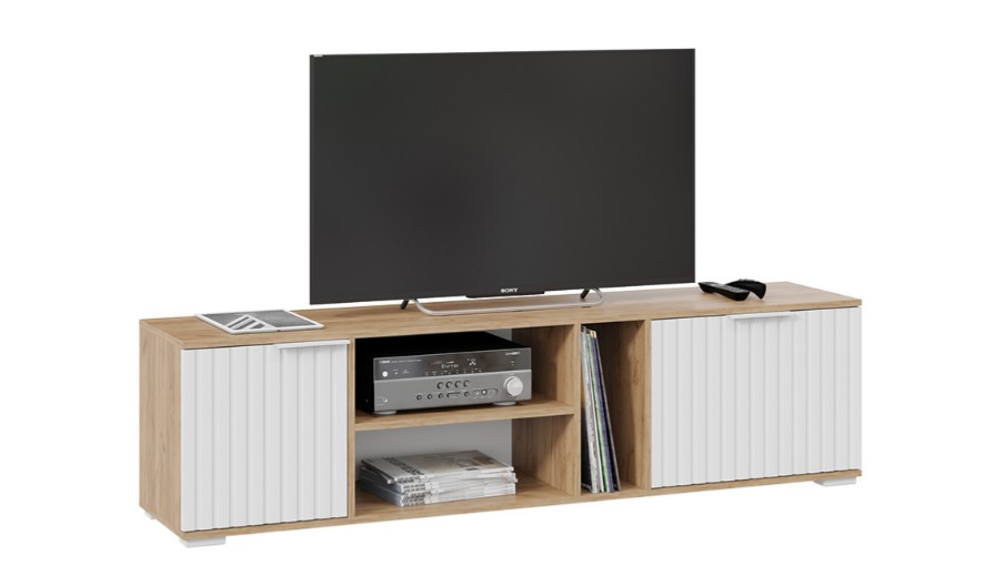 Хилтон Тумба под ТВ (Дуб крафт золотой/Белый матовый)