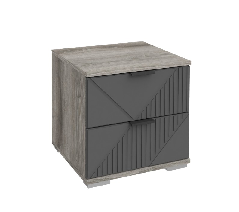Фасады прикроватной тумбы Манхеттен украшены оригинальной фрезеровкой с геометрическим узором. Такое решение делает тумбочку акцентным элементом интерьера. Направляющие скрытого монтажа с доводчиками позволяют максимально увеличить внутреннее пространство выдвижных ящиков.