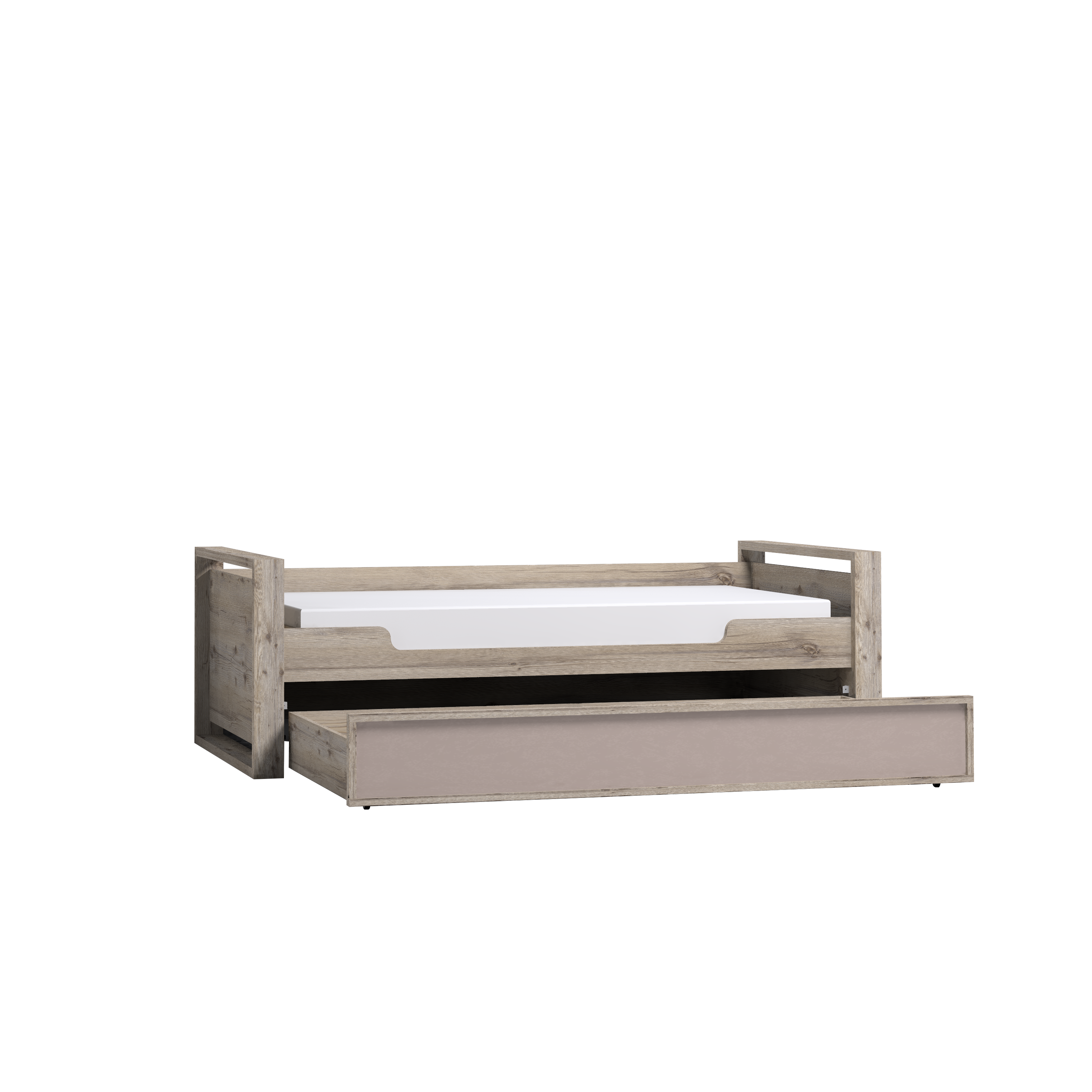 Детская или подростковая кровать-тахта с большим ящиком глубиной 182 мм на выкатных роликах. Его можно использовать как место для хранения постельного белья или как дополнительное спальное место для незапланированных гостей. Для полноценного спального места достаточно убрать разделитель и положить матрас. Размер матраса для основного спального места 190х90 см. Размер матраса для дополнительного спального места: 190х80 см, высотой до 18 см. Дополнительные боковые ниши в кровати помогут подростку держать под рукой необходимые перед сном вещи. Бонусом для современных детей станет компактная встроенная в кровать USB зарядка для телефонов и планшетов.