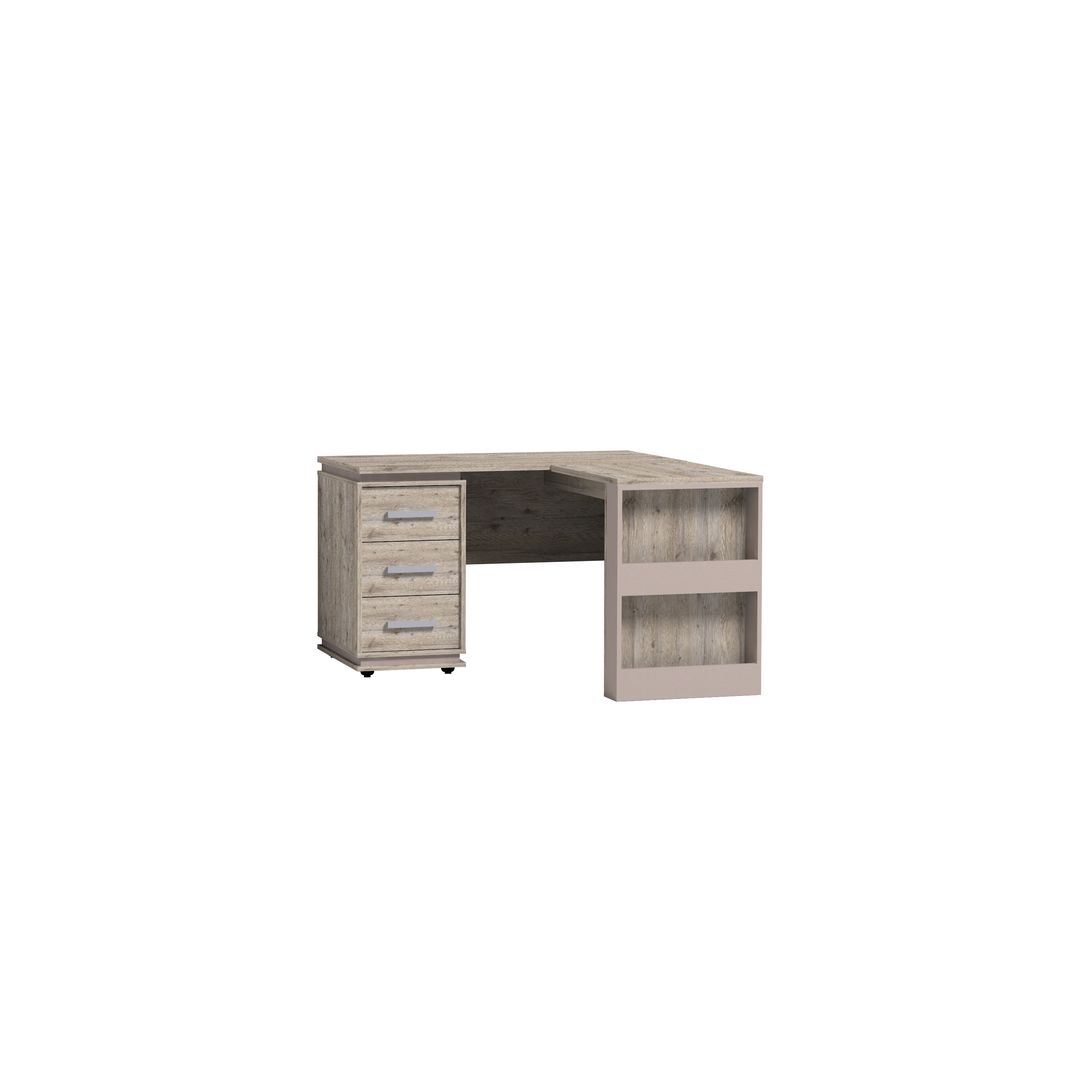 Увеличить площадь рабочего места для размещения книг, рабочих тетрадей и техники можно используя дополнительную консоль к модулю Nature 84 Cтол письменный. С внешней стороны приставного стола имеется дополнительная ниша для хранения. Угловой стол можно установить с любой стороны письменного стола, образуя тот угол, который подразумевает планировка комнаты. Ширину стола можно увеличить или уменьшить на 150 мм с шагом в 1 мм.