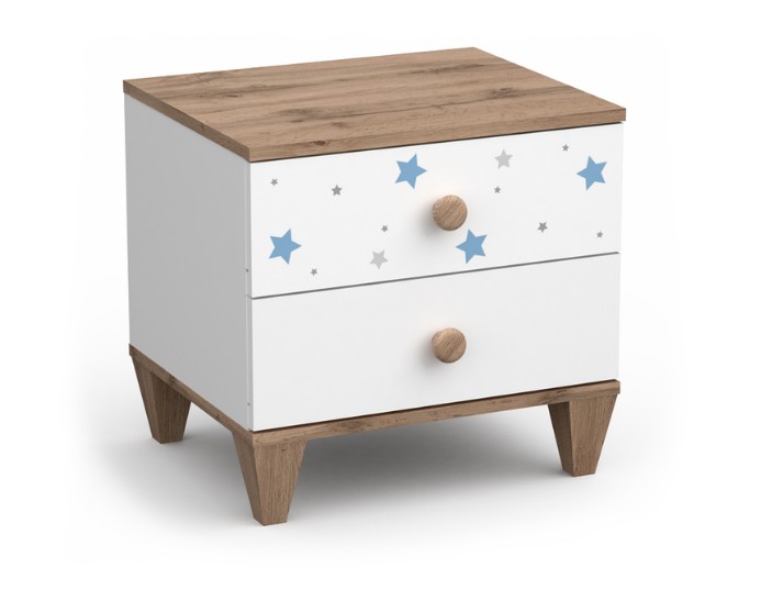 Млечный путь или звездный небосвод в детской спальне? Это реально со спальней Nicky/Никки от Askona Kids. Удачное сочетания базового белого цвета со вставками цвета дуб, которые прекрасно дополняют яркий декор в виде звездочек. Мы продумали два цветовых решения- нежный розовый цвет в спальню девочкам и небесно- голубой для мальчиков. Благодаря устойчивым опорам спальня смотрится легко, а также доступна уборка роботом пылесосом.Прикроватная тумба Nicky/Никки поможет завершить интерьер детского спального места. Тумба станет дополнительным местом для хранения самых необходимых вещей, а также на ней будет удобно разместить ночник или лампу.