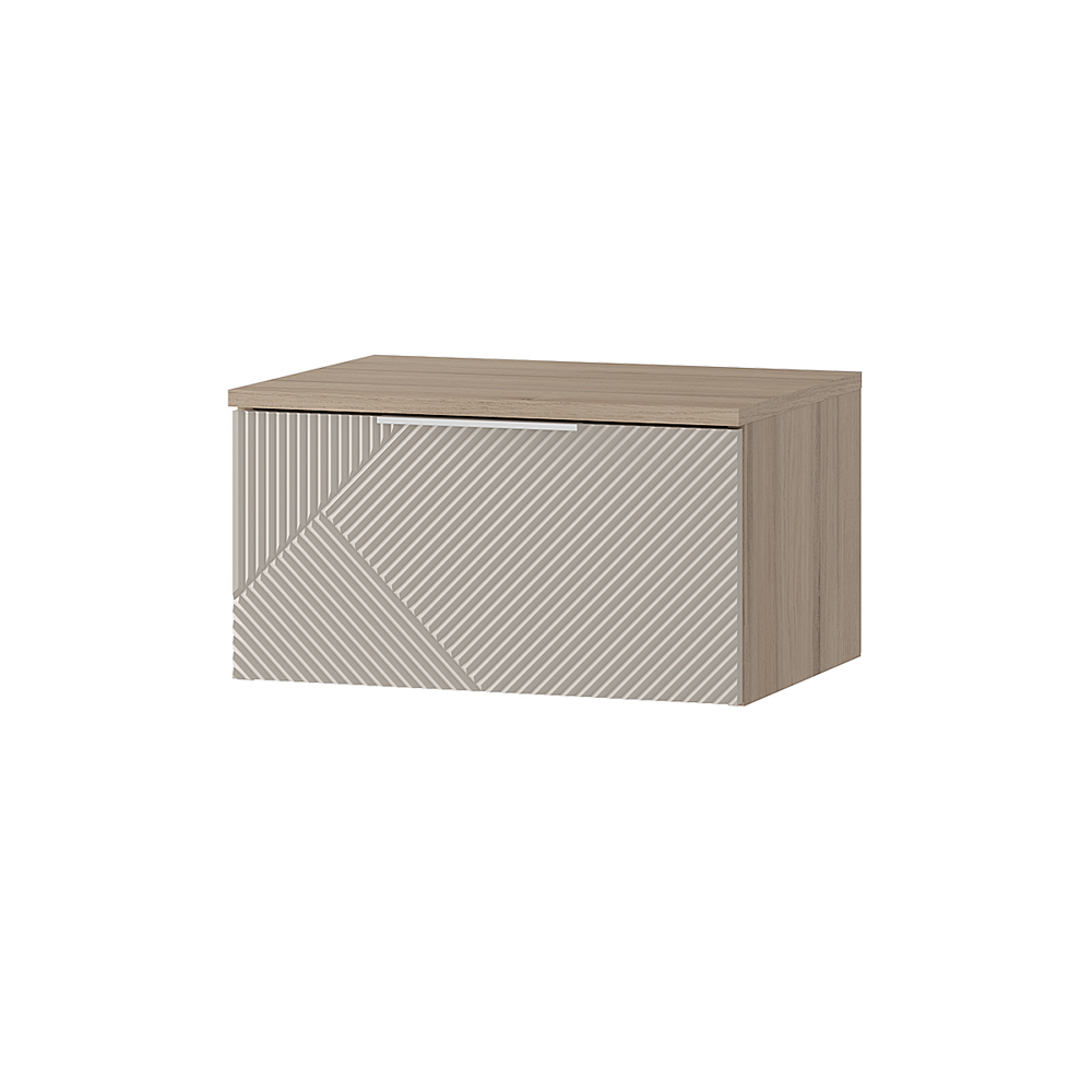 Навесная прикроватная тумба Эмилия позволяет экономить пространство и облегчает уборку пола. Лаконичные модули из данной серии украшены изысканной фрезеровкой, а приглушенная цветовая гамма легко впишется в современный интерьер.Особенности:ящик на шариковых направляющихкрепится к стене при помощи L-образного навеса